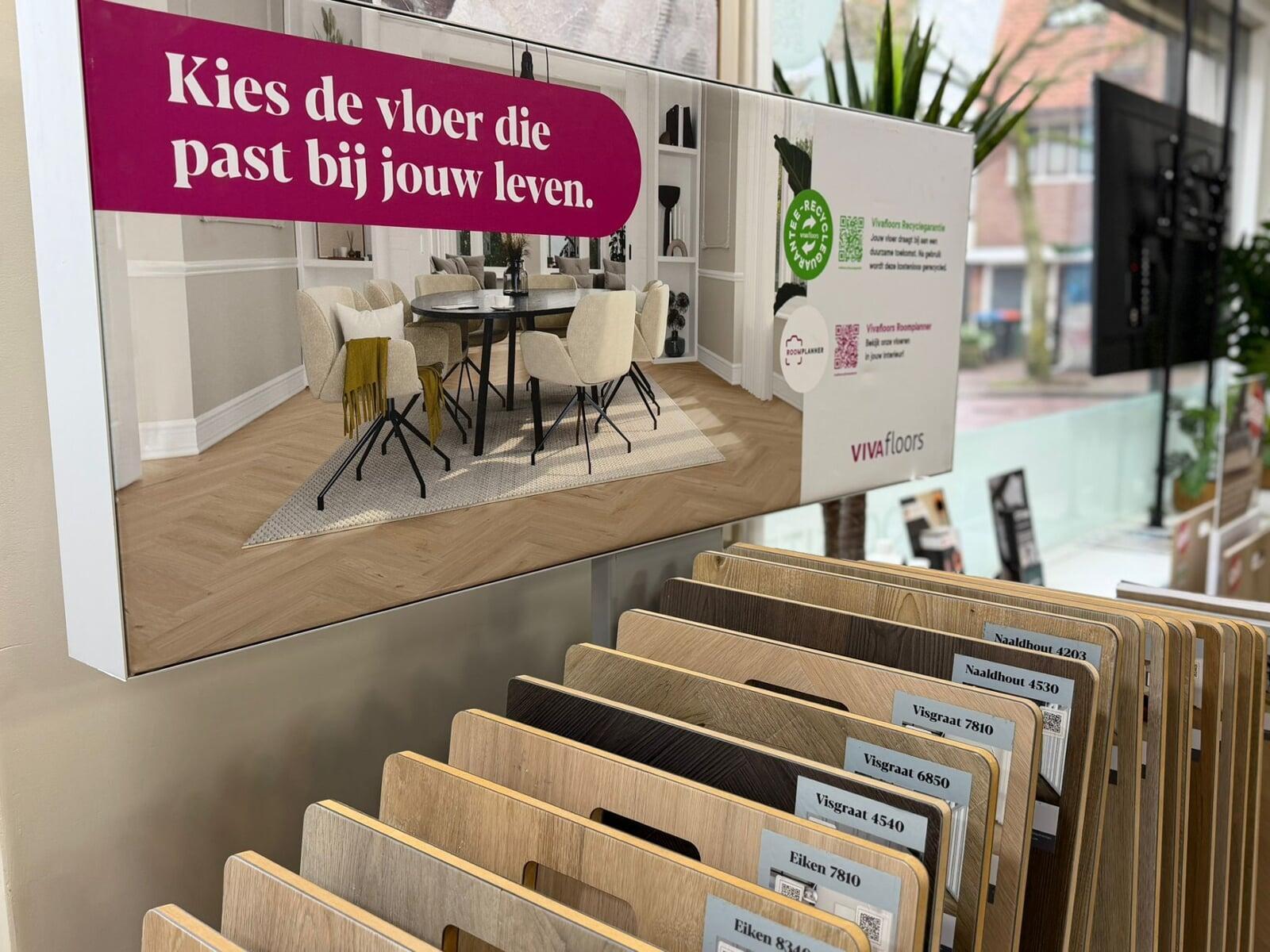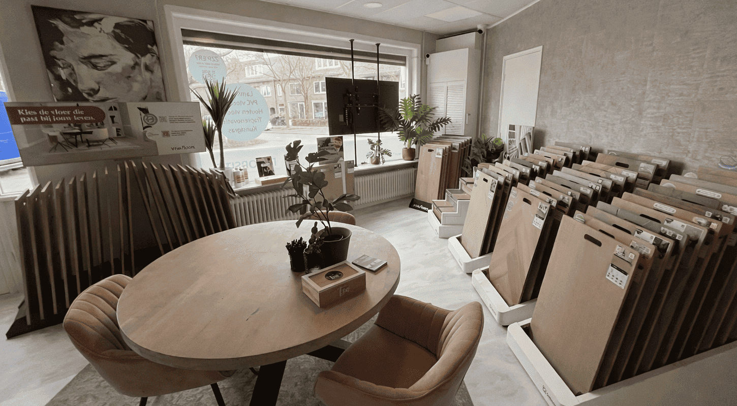 Kom langs in de showroom, zelfstandig of met persoonlijk advies op afspraak, of kies direct een vloer en ontvang de offertelink per e-mail.